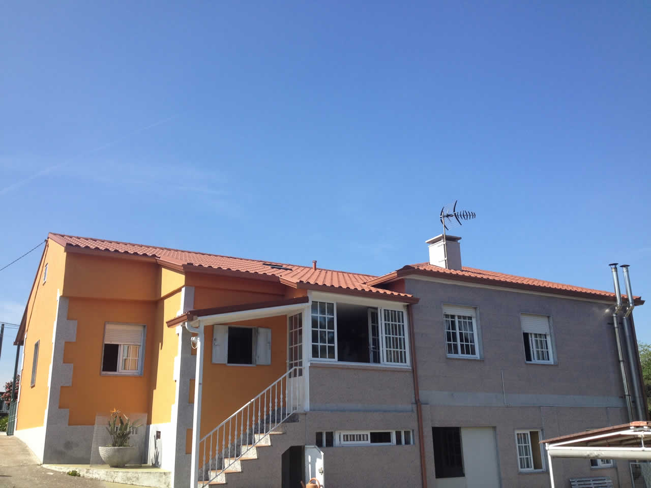Montaje de cubierta con estructura metálica colocación de panel teja.
